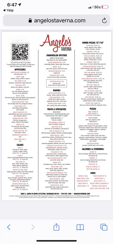 Angelo’s Taverna in Littleton, CO offers a casual yet trendy dining experience with a variety of options for vegetarians and vegans. The menu includes appetizers like Burrata Pesto and Grilled Lamb Lollipops, salads such as Fancy Italian Salad and Winter Spinach Salad, and delicious ravioli choices like Cheese Ravioli and Butternut Squash Ravioli. Customers rave about the flavorful dishes and top-notch service, with reviews highlighting must-try items like the vodka penne and calamari. The atmosphere is described as welcoming and perfect for gathering with friends and family. With outdoor seating, happy hour specials, and a full bar, Angelo’s Taverna is a great spot for a satisfying meal in a vibrant setting.